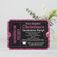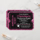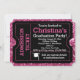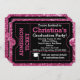 Pink glitter padrão de fundo para meninas, incríveis convites para ingressos de festas de Formando divertidos, em rosa com fundo rosa vibrante e um boné de formando de placa-mãe e imagem de fita. Convidado novo e único para a garota formando! Parece que um bilhete de admissão com recortes de canto real é um convite ousado e divertido.