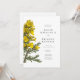 Uma ilustração digital original de flores de tojo amarelas no estilo de esboços botânicos vintage é destaque neste convite.