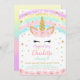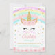 Convite de Unicórnio com Flores Rosa Arco-íris