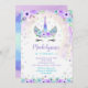 Lindo Convite de Unicórnio de Inverno. Design único com elementos desenhados à mão.
