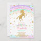 Convite de Unicórnio Dourado com Estrelas Glitter