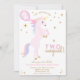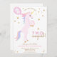 Dois Convite de Aniversário do Unicórnio Mágico Dois Convite Mágico! Celebre o seu grande dia com este convite de aniversário de unicórnios divertido e sonhador. Com um unicórnio rosa e pastel surgindo com um mane arco-íris, é perfeito para seus filhos segunda festa de aniversário com um unicórnio, arco-íris ou tema de conto de fadas. Personalize facilmente com o nome do seu filho e os detalhes da festa. Bonita, colorida, e cheio de magia, como sua aniversariante!
