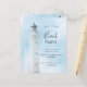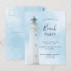 Um convite para uma costa náutica pela festa de verão do mar, festa de praia. Um céu azul claro como fundo e um farol branco como decoração. Modelos para detalhes de sua parte, informações. Verso: céu azul claro como fundo. Dica: Se você não quiser que pareça um cartão postal, clique em personalizar, vá para o verso e remova o divisor e o carimbo de posto.