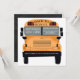 De volta à escola um ônibus engraçado no final do convite de festas de verão com um tradicional ônibus escolar laranja desenhado à mão.