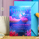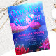 Este convite usa azul e rosa como paleta de cores principal. A profundidade no design é dada atenção fazendo com que os peixes pareçam muito distantes do ponto de vista focal principal. Efeitos de iluminação são usados especialmente na cauda da sereia, para torná-la a estrela do design