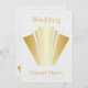 Menu janto de casamento, design de deco de arte dourado. Personalize este menu de casamento dourado com os detalhes do seu casamento e mande-o impresso e enviado a você ou faça o download instantâneo para o seu dispositivo móvel. Se precisar de ajuda para personalizar, entre em contato conosco através do link desta página. Dourado menu de casamento personalizado do design de deco de arte, impresso ou baixado instantaneamente