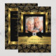Convite de Aniversário de Casamento de Ouro e Diamante Preto Art Déco. Elegante arco de jóia e desenho floral com brilho dourado. Eles NÃO contêm Jóias ou Arcos verdadeiros!