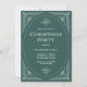 Estes elegantes convites para festas de Natal apresentam uma rotação moderna no clássico deco de arte. Um quadro geométrico ornamentado, branco e ornamentação decoram um fundo verde festivo para um visual clássico, mas glamouroso, de férias.
