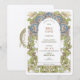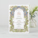 Este convite de chá de noiva deslumbrante apresenta o estilo icônico da Arte Nova de Alphonse Mucha. O design é inspirado nas linhas elegantes e curvas fluidas da Arte Nova, com um toque de glamour da Arte Deco. O convite apresenta detalhes florais intrincados. O texto é impresso em uma fonte estilosa, perfeito para qualquer celebração de chá de noiva elegante.
