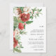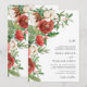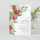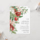 Este convite de casamento moderno e festivo apresenta elegantes flores vermelhas em aquarela com bagas de azevinho, pinhas e folhagens. A parte de trás do cartão inclui a mesma obra de arte. Encontre itens correspondentes na Coleção de Natal Botânica de Inverno Vermelho.