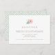 Projetado para combinar com nossa coleção de convites Island Hibiscus, este cartão de decoração de recepção de casamento tem um charme tropical vintage, com uma pequena ilustração de flor de hibisco cor-de-coral e verde e os detalhes da recepção do casamento em taupe suave. Os cartões têm no verso um padrão de treliça de bambu em branco sobre verde pastel.