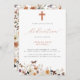 Convite Dedicação de Bebê com Cruz e Letra Cursiva de Flor