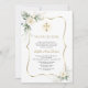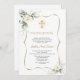 Design de cartão branco branco elegante, moderno e Dourado cintilante. Apresenta uma elegante estrutura de folha de ouro falso, verde-lenhoso de cor-de-água, flores brancas, cruz de ouro brilhante e fontes lindas. Use a ferramenta Personalizar para adicionar suas informações. Todo estilo de texto, cores, tamanhos podem ser modificados para ajustado das suas necessidades. Para obter itens correspondentes, visite minha coleção de dedicação.