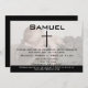 Convide amigos e familiares para celebrar a dedicação especial do seu filho com esses convites de foto de bebê modernos em preto e branco. O design minimalista apresenta uma cruz simples com o nome do seu filho(a)—acompanhado pelos detalhes da cerimônia e celebração. Cartões de dedicação de bebê. Sobreposição de filtro branco para fazer a foto desvanecer ao fundo.