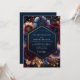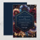 Immerse your special day in a luxurious tapestry of deep blue blooms and rich crimson blossoms. This opulent design evokes a sense of vintage romance with its lush floral arrangement. The striking color palette creates a dramatically elegant atmosphere.