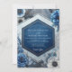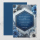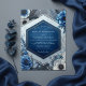 This design features a rich, deep blue floral motif with hints of white and silvery-grey foliage. Elegant blooms and delicate greenery create a sophisticated and romantic atmosphere, perfect for a memorable occasion.