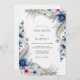 A rich tapestry of deep blue and soft pink blooms unfurls across this artistic design. Delicate brushstrokes evoke a romantic, ethereal mood, perfect for a sophisticated union. Golden accents add a touch of elegance to the floral arrangement.
