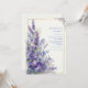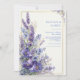 Invite your guests with the lush elegance of this hand-painted botanical arrangement. This design features vibrant deep violet poppies with silk-textured petals that anchor a vertical cascade of tall purple lavender stalks. Sprays of periwinkle blue blossoms and delicate greenery add a sense of movement and wild beauty to the composition. A double-line metallic gold frame provides a clean, structured border for your ceremony details, set against a warm, off-white background with a subtle paper texture. The high-definition detail and rich color palette evoke a romantic, fine-art feel that is both sophisticated and inviting. This botanical layout is a premier choice for a classic garden wedding or a formal evening ceremony. The rich purple and gold color story makes it a flawless fit for an elegant outdoor bridal shower, a refined engagement party, or a whimsical vineyard reception. It pairs beautifully with motifs like dark romantic, French provincial, or fine-art botanical, and coordinates perfectly with gold metallic accents, velvet textures, and deep plum linens.
