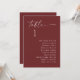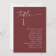 This table seating chart keeps guest placement simple and easy to follow. The design combines a clear table number with a neatly arranged guest list, so guests can quickly find their seat without confusion. The script heading adds a bit of personality, while the rest of the layout stays clean and structured. The deep wine red background gives the card a richer, more refined look, making it especially suited for evening receptions or weddings with deeper color palettes. Pairs naturally with modern elegant, classic, minimalist, and romantic wedding styles, and fits beautifully into fall and winter weddings, as well as more formal late summer events. Available as both a printed card and a digital download.