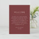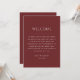 Convite Deep Wine Red Wedding Timeline. Schedule + Welcome