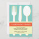Diga aos seus amigos que seu lugar é onde eles estarão nesta comemoração de Ação de Graças. Estes agradecimentos modernos convidam um conjunto de utensílios comedores (garfo, faca, colher) sob uma faixa laranja. As informações do seu partido estão definidas em uma mesa de bolinhas leve e divertida. Faça da sua festa de agradecimento um sucesso com esses convites de festas deliciosos.