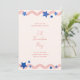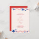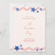 Celebre o aniversário da América com este divertido e patriótico convite de festa de bbq de 4 de julho no quintal com listras vermelhas festivas e estrelas azuis em um fundo de cor marfim.