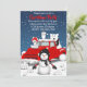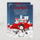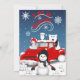 Este design apresenta a nostalgia de um velho caminhão vermelho com alguns animais árticos e um boneco de neve em uma cena invernal.