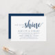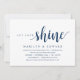 Cartão de convite temático de letra azul naval, Rustic moderno (com título do cartão: Deixe o amor brilhar). É perfeito para o seu casamento elopamento recepção / festa de celebração pós-casamento. Adicione seus detalhes na fonte / letra preta correspondente.