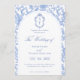 Convite Delft Blue Floral Chinoiserie Monogram Wedding