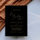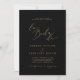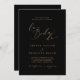 Esta delicada caligrafia dourada, a bla do convite de casamento é perfeita para um casamento moderno. A design romântica minimalista apresenta uma magnífica e elegante tipografia amarela ouro champanhe num fundo preto com um aspecto simples e limpo.