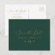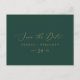 Este delicado cartão postal de save the date em dourado e verde é perfeito para um casamento moderno. O design minimalista romântico apresenta uma tipografia elegante e encantadora em amarelo dourado champanhe sobre um fundo verde esmeralda com um visual limpo e simples.