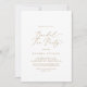 Este delicado convite de festas de chá de noiva de caligrafia de ouro é perfeito para um evento moderno. A design romântica minimalista apresenta uma magnífica e elegante tipografia amarela ouro champanhe num fundo branco com um aspecto simples e limpo.