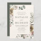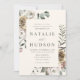 Celebre seu dia especial com estes elegantes convites de casamento floral de inverno. Os detalhes do seu casamento são exibidos em letras verdes profundas, enquadrados por um arranjo inspirado em boho de flores de inverno e folhagem em um fundo de marfim. A design apresenta rosa, rosas claro, marfim e flores amarelas de ouro sujentas, complementadas por folhas de eucalipto e sotaques verdes da floresta ricos. Perfeito para casamentos no inverno, esta design romântica se emparelha maravilhosamente com peças coordenadoras da nossa coleção de casamento da Floral de inverno.