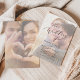 Este delicado convite de casamento de fotos desbotadas com caligrafia negra é perfeito para um casamento moderno. A design romântica minimalista apresenta uma magnífica e elegante tipografia negra com um aspecto simples e limpo. Personalize com duas fotos de noivado, uma na frente e outra atrás.