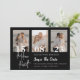 Esta é uma bela "Salve a data" com três fotos suas e de sua esposa. Apresenta texto preto e branco limpo. Este design é completamente personalizável - você pode personalizar o texto, a cor do texto e a cor do plano de fundo de seu gosto