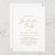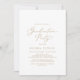 Este delicado convite à festa de formatura de caligrafia em ouro é perfeito para uma festa moderna ao ar livre. A design romântica minimalista apresenta uma magnífica e elegante tipografia amarela ouro champanhe num fundo branco com um aspecto simples e limpo.