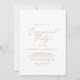 Esse delicado convite à festa de noivado de caligrafia em ouro é perfeito para um evento de noivado moderno. A design romântica minimalista apresenta uma magnífica e elegante tipografia amarela ouro champanhe num fundo branco com um aspecto simples e limpo.