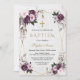 Design único com uma falso estrutura dourada adornada com cor d'água púrpura, ameixa, flores cor-de-rosa, buquês de folhas verdes; sobre um fundo de papel de cor d'água. No verso, coroa floral e iniciais. Use a ferramenta Personalizar para adicionar suas informações. Itens correspondentes podem ser encontrados na minha nova coleção de celebrações de Natal Batismo.