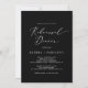 Este delicado convite jantado para o ensaio de caligrafia negra é perfeito para um ensaio de casamento moderno. A design romântica minimalista apresenta uma magnífica e elegante tipografia branca num fundo preto com um aspecto simples e sofisticado.