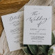 Esta delicada caligrafia negra, tudo em um convite de casamento jante de QR é perfeito para um casamento moderno. A design romântica minimalista apresenta uma magnífica e elegante tipografia negra num fundo branco com um aspecto simples e limpo. Salve o papel, incluindo os detalhes na parte traseira do convite de casamento, em vez de em um cartão de cercado separado. Inclua um código QR para seus convidados para verificar seu site de casamento ou para RSVP facilmente on-line.