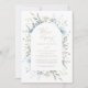 Celebrate your special day with this elopement reception invitation! Features a delicate dusty blue floral botanical arrangement, framing an arch holding all your event details in soft, delicate, elegant and whimsical gold fonts. Contact designer for matching products. Copyright Susan Mingay Koehrn for Susan Mingay Designs, all rights reserved.