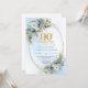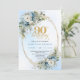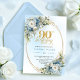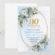 Convite Delicate Boho Dusty Blue Floral Gold 90th Birthday