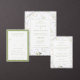 At the heart of the invitation is a beautifully crafted watercolor allover print design, adorned with lush greenery and delicate flowers in soft pastel colors. This artistic element captures the essence of romance and natural beauty, creating a serene and inviting atmosphere.