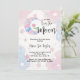 This charming digital design combines a soft digital watercolor style with a subtle digital glitter touch, creating a magical and tender atmosphere perfect for celebrating a baby shower. The illustration features a crescent moon decorated with a delicate pink flower inside, set against a background of sparkling stars that evoke calm, harmony, and sweetness. The pastel tones of the background enhance a sense of serenity and well-being, making it ideal to honor the expectant mother and welcome the baby in an elegant and memorable way.