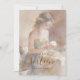 This Sweet Sixteen invitation celebrates youth and elegance with a pastel and romantic style. The illustration shows a young woman wearing a golden and gray strapless gown, surrounded by soft flowers, with a delicately blurred background that adds serenity and harmony. The scene conveys tenderness and joy, capturing a contemplative and charming moment with a watercolor effect that highlights softness and warmth.