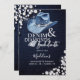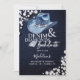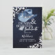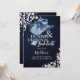 Um convite para o tema da festa de solteira de denim e diamantes moderno, elegante e elegante para uma festa de despedida de solteira. Apresenta um fundo denim e rotinas (este é um efeito digital), tipografia em branco, assim como um chapéu de vaqueiro denim com rotinas (faux). No verso, uma modelo para os detalhes itinerários, com a caligrafia moderna para o título e o motivo do anel como decoração. Um chic, na moda e clássico "denim e diamantes... convite para uma noiva na sua viagem de ms para mrs! Vamos, meninas! Perfeito para um fim de semana com as damas de honra, em Las Vegas ou numa viagem de raparigas.