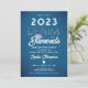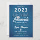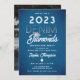 Um convite de festa de formatura moderno, elegante e chic com um tema de denim e diamantes. Apresenta um fundo denim, o ano em letras negrito, letras personalizadas para a palavra "denim" e tipografia em branco. Um design de "denim e diamantes" chico para uma jovem na sua formatura!