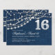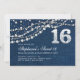 Um modelo moderno, elegante e elegante Doce 16 para raparigas com um fundo denim, cordas de pérolas e diamantes (estes são efeitos digitais) e tipografia moderna em branco pérola. Um design chic de "ouros e pérolas" para uma garota fazendo dezesseis anos, no seu décimo sexto aniversário que combina outro tema da moda: denim e diamantes. Uma escolha encantadora para um adolescente que gosta de denim, diamantes, pérolas, brilho e brilho, terra ocidental e elegância despretensiosa.