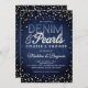 Convite Denim Diamantes Pérolas Azul Casal Moderno Chá
