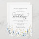 Mão pintada a aquarela convite floral de casamento com flores silvestres em tons de azul empoeirado e amarelo com roteiro de caligrafia moderno e código QR com detalhes no verso. Linda e elegante floral de aquarela tudo em um convite de casamento perfeito para casamentos rústicos e casamentos de verão ao ar livre. Você pode personalizar o texto, o estilo da fonte, a cor e o tamanho em frente e atrás do cartão. Por favor, sinta-se à vontade para contactar-me para obter os itens correspondentes.